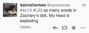 I thought the quality and variety of presentations was impressive. I appreciated the opportunity to talk with people whose work I had read and admired and found the faculty in attendance really committed to mentoring new people in. I had great conversations with people at every turn, especially about pop culture and fan culture communities online. I’ve had no formal training in digital publishing or coding, but I’ve been participating in fan communities and trying to make blogs on various platforms do what I want for ten years now, so I’m fairly well-situated to follow those conversations, and I really, really want to know more. I feel like #cwcon was a place for me to watch other people think through the digital marvels of everyday life, and I hope I have something ready in time to submit for next year.